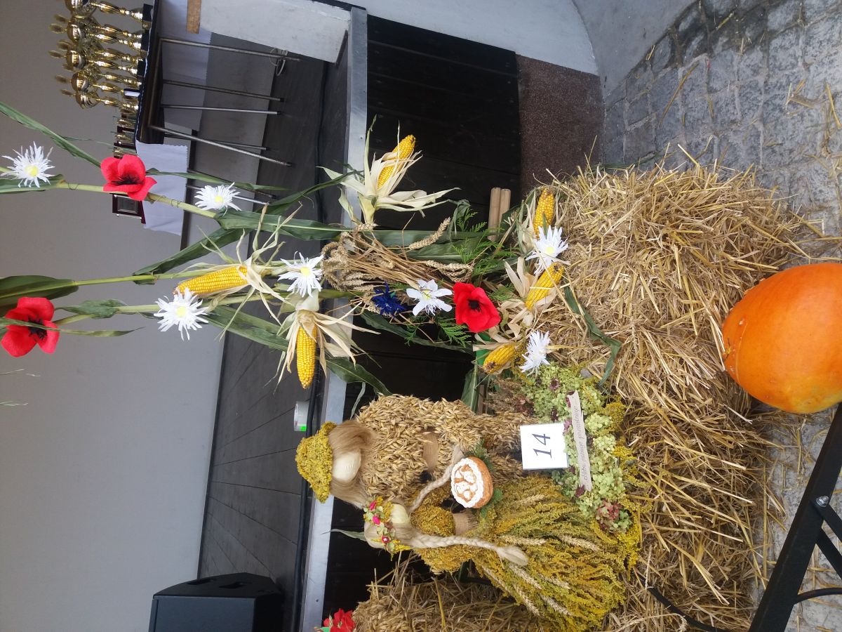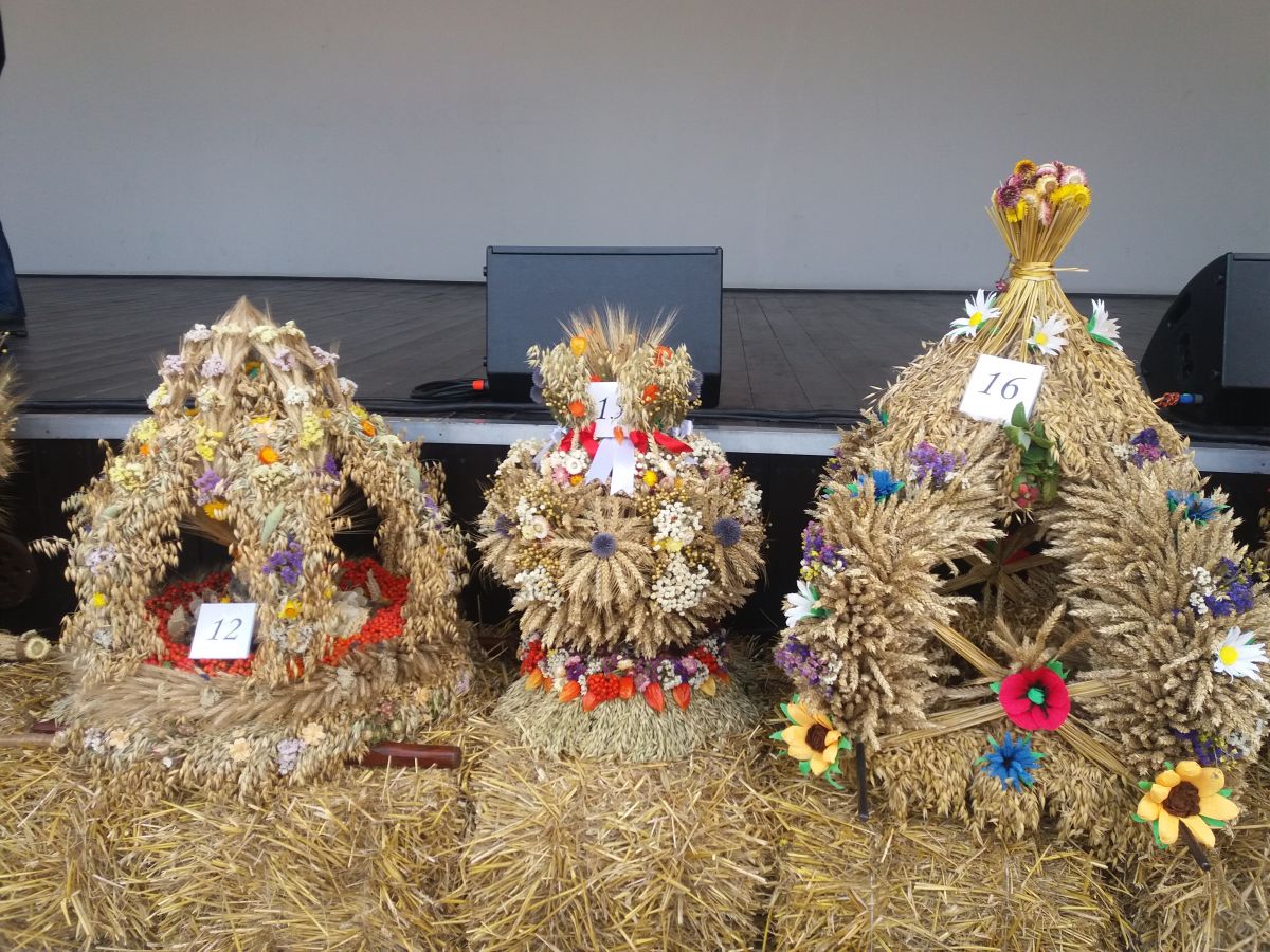 Panie przygotowały przepiękne wieńce z naturalnych materiałów roślinnych jako tradycyjne wieńce płaskie, korony lub kompozycje współczesne. Co roku panie z KGW zaskakują pomysłowością, dokładnością i kolorystyką przygotowanych wieńców.
