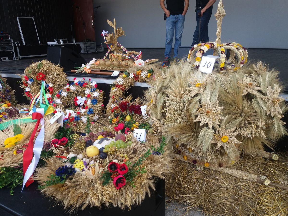 Wieńce obejrzało i podziwiało kilkaset osób uczestniczących w Dożynkach.